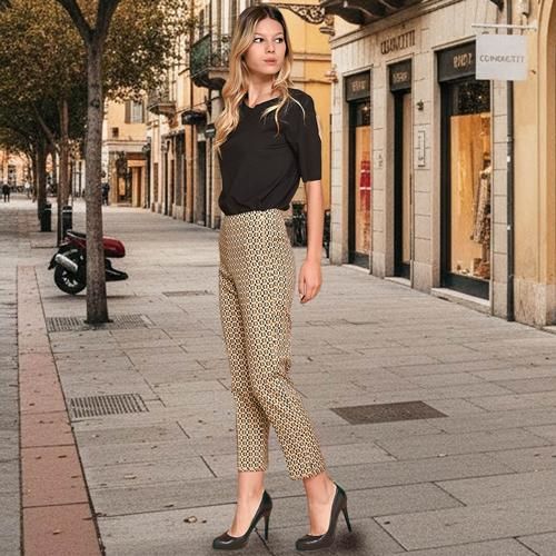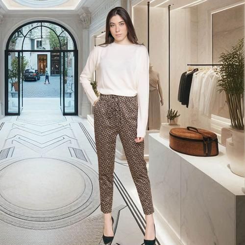 [新作ITEM 1] イタリア製!茶系幾何学柄ドローストリングテーパードパンツ
