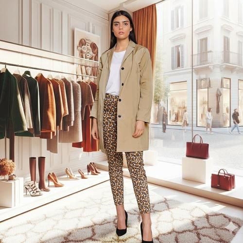 [定番ITEM 4] ベージュ基調のトリコロール柄の上品パンツ