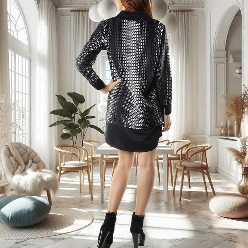 Ìܤò°ú¤¯Çò¹õ¤Î´ö²¿³Ø¥Ñ¥¿¡¼¥ó¤Ë¡¢Âµ¸ý¤È¿þ¤Î¹õ̵ÃÏÀÚ¤êÂØ¤¨¤ò¹ç¤ï¤»¤¿¥á¥ê¥Ï¥ê¤Î¤¢¤ëɽ¾ð¡£¿¼¤á¤ÎV¥Í¥Ã¥¯¤¬¥Õ¥§¥¤¥¹¥é¥¤¥ó¤ò¤¹¤Ã¤­¤ê¸«¤»¡¢¥Ò¥Ã¥×¤òÊñ¤à¥Á¥å¥Ë¥Ã¥¯¾æ¤¬°Â¿´´¶¤ò¤¯¤ì¤Þ¤¹¡£¤Ò¤¶¾å¤Î¥Ð¥é¥ó¥¹¤Ê¤Î¤Ç¡¢¥ï¥ó¥Ô¡¼¥¹¤È¤·¤Æ¤â¥í¥ó¥°¥È¥Ã¥×¥¹¤È¤·¤Æ¤â°·¤¤¤ä¤¹¤¤°ìÃå¤Ç¤¹¡£