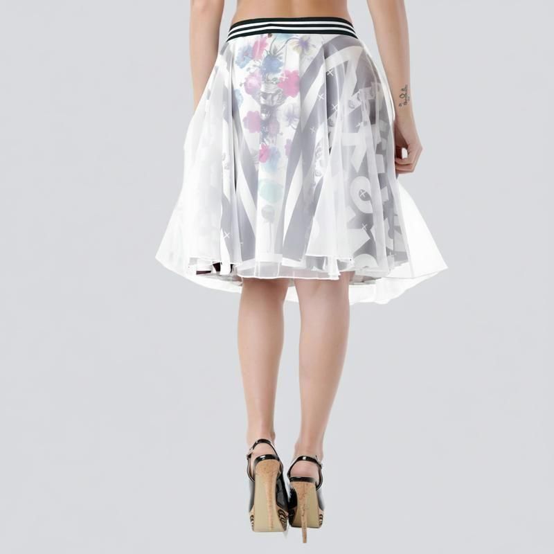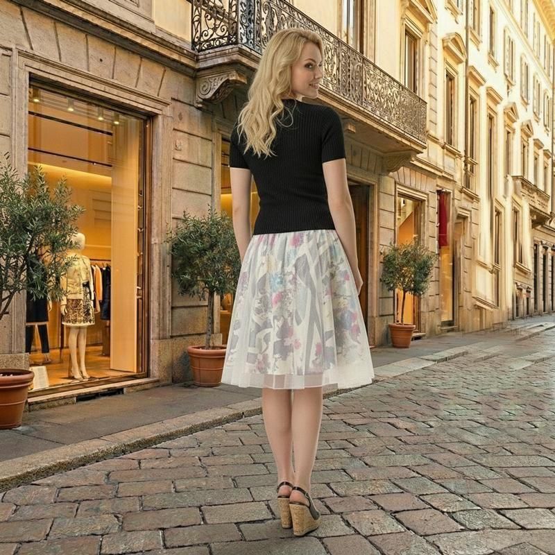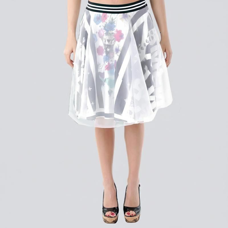 大人の女性のキュートなカジュアルスタイルに|SEXY WOMANの白地フラワープリント×オーガンジーサーキュラースカート【イタリア直輸入】#大人の魅力 #イタリア製 #海外ファッション