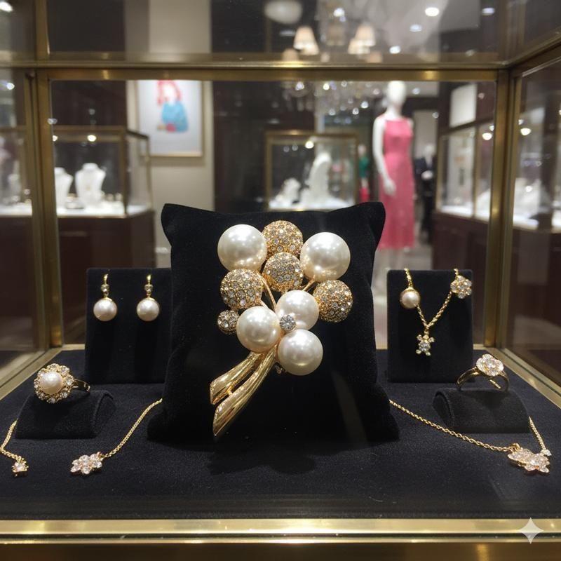 ¥´¡¼¥ë¥É¤Î²Ö«¥â¥Á¡¼¥Õ¤¬¶»¸µ¤ò¾åÉʤ˾Ȥ餹¥Ö¥í¡¼¥Á¡£¥Ñ¡¼¥ë¤È¥é¥¤¥ó¥¹¥È¡¼¥ó¤Îµ±¤­¤Ë¡¢¿¿ï«¤ÎÍî¤ÁÃ夤¤¿¸÷Âô¤¬½Å¤Ê¤êɽ¾ðË­¤«¡£¥¹¥È¡¼¥ë¤ä¥³¡¼¥È¤Îα¤á¤Ë¤â»È¤¨¡¢Áõ¤¤¤Ëµ¤Éʤòꤍ¤Þ¤¹