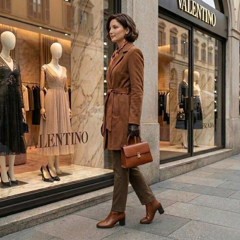 都会的なキャメル。シャープな縦ラインと滑らかなエコスエードが、大人の品格を叶えます。 <朝の通勤や夕方のショッピングなど“日常を格上げ”>