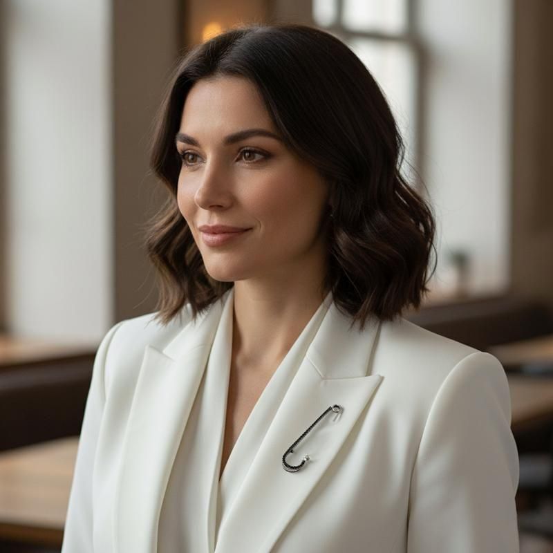 ¹õ¤Î¥Ô¥ó¤Ë¹õ¥é¥¤¥ó¥¹¥È¡¼¥ó¤¬ÀŤ«¤Ë¤­¤é¤á¤¯°ÂÁ´¥Ô¥ó·¿¥Ö¥í¡¼¥Á¡£¥·¥ó¥×¥ë¤ÊÁõ¤¤¤ò°ú¤­Äù¤á¡¢¥¸¥ã¥±¥Ã¥È¤ä¥¹¥È¡¼¥ë¡¢Ë¹»Ò¤Î¥ï¥ó¥Ý¥¤¥ó¥È¤Ë¹¥ÁêÀ­¡£ÄÌǯ¤Ç»È¤¤¤ä¤¹¤¯¡¢¥®¥Õ¥È¤Ë¤âÁª¤Ó¤ä¤¹¤¤°ìÉʤǤ¹¡£