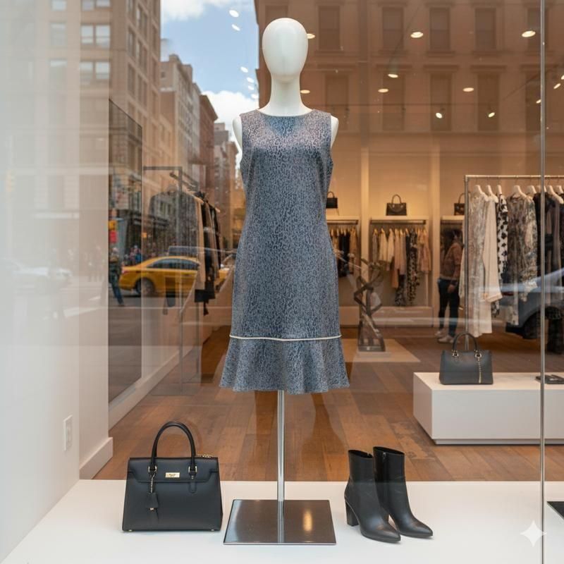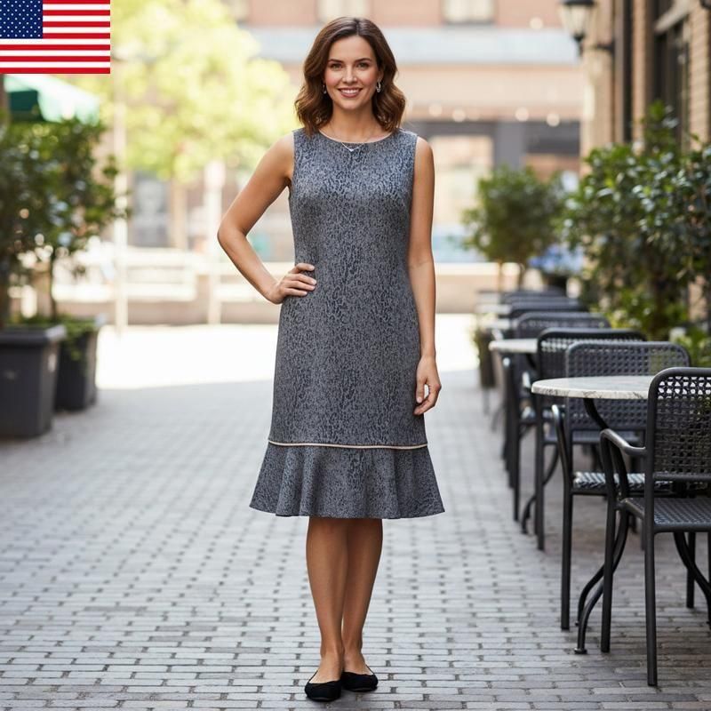 通勤 オフィス お呼ばれにも。Vネック 幾何学 モノトーン ニットワンピース [SEXY WOMAN]。上品なキャップスリーブとミニ丈ストレート。ラインを拾いにくい中肉素材で秋冬春まで着回せる一枚