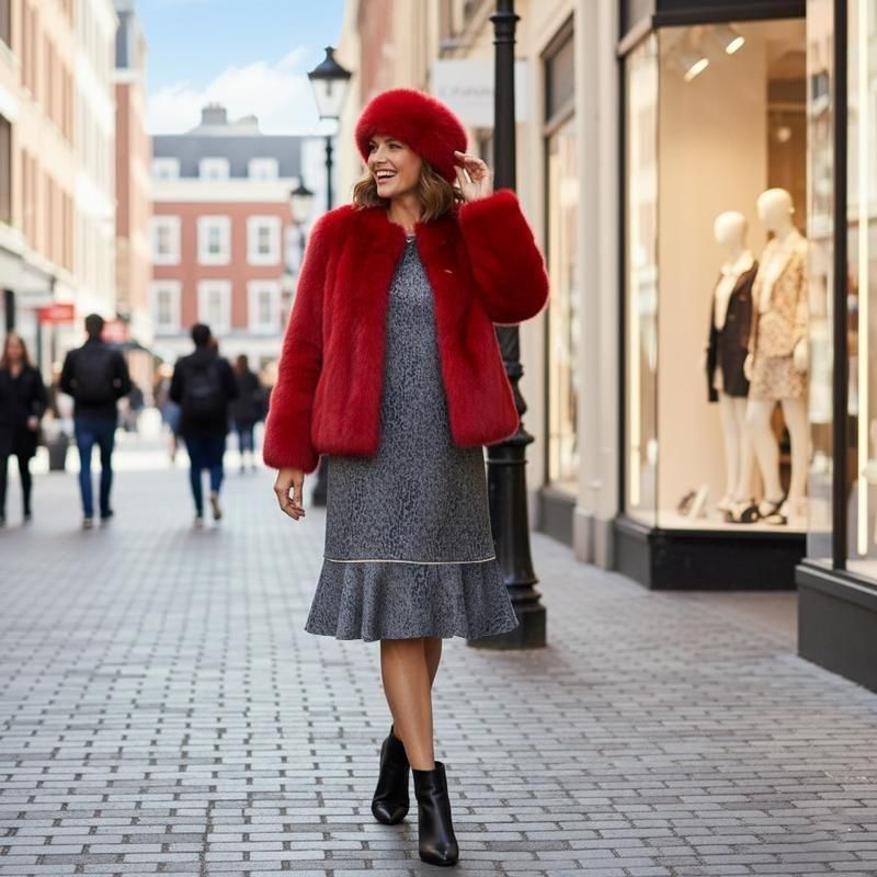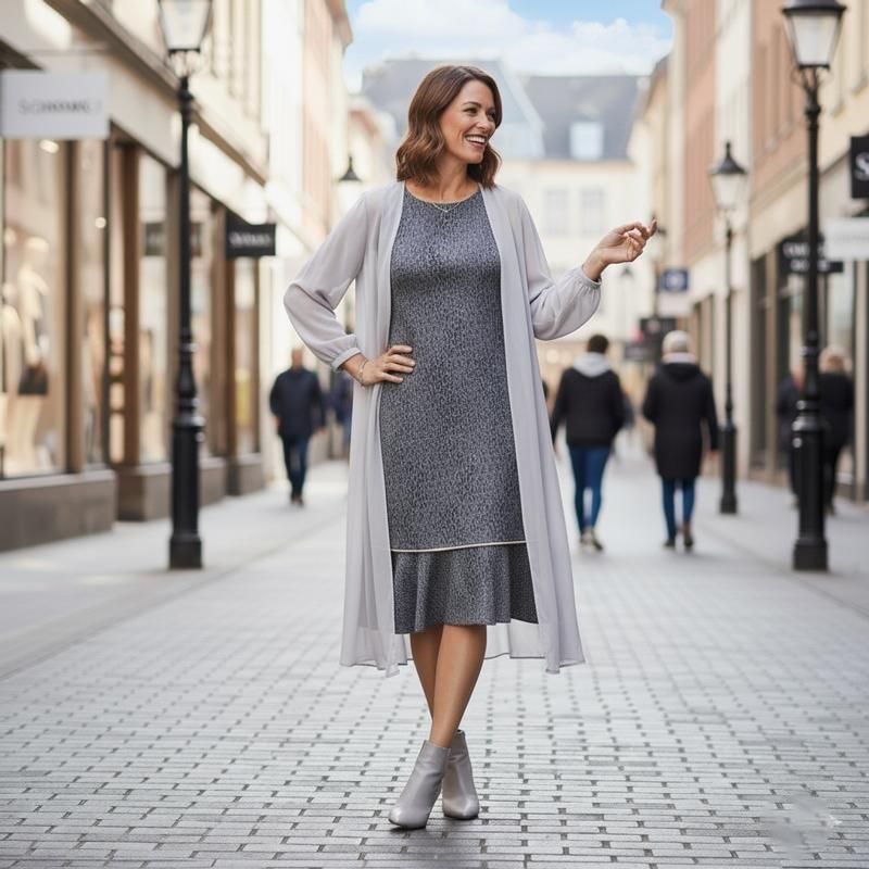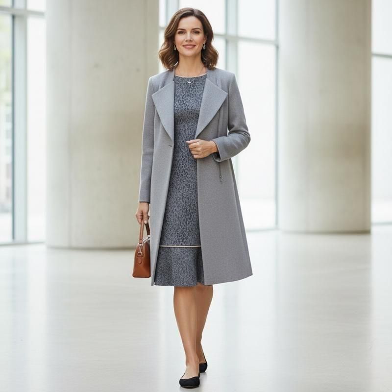 Aラインのチェックトップス(七分袖)。茶系プリンスオブウェールズに、ハリとしなやかさを備えた素材。自然な肩線と緩やかに広がった裾、パンツ全般と好相性。秋冬の通勤にも頼れる一枚。